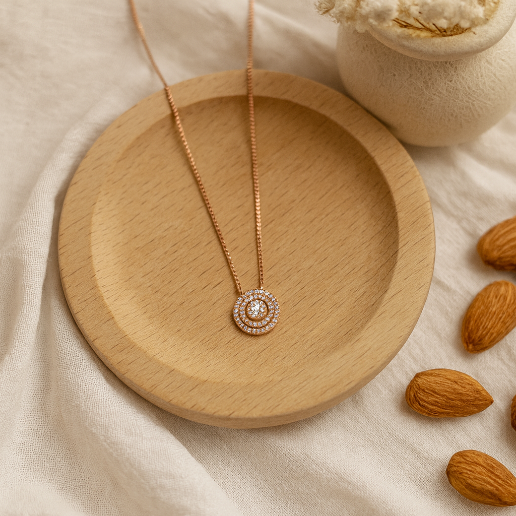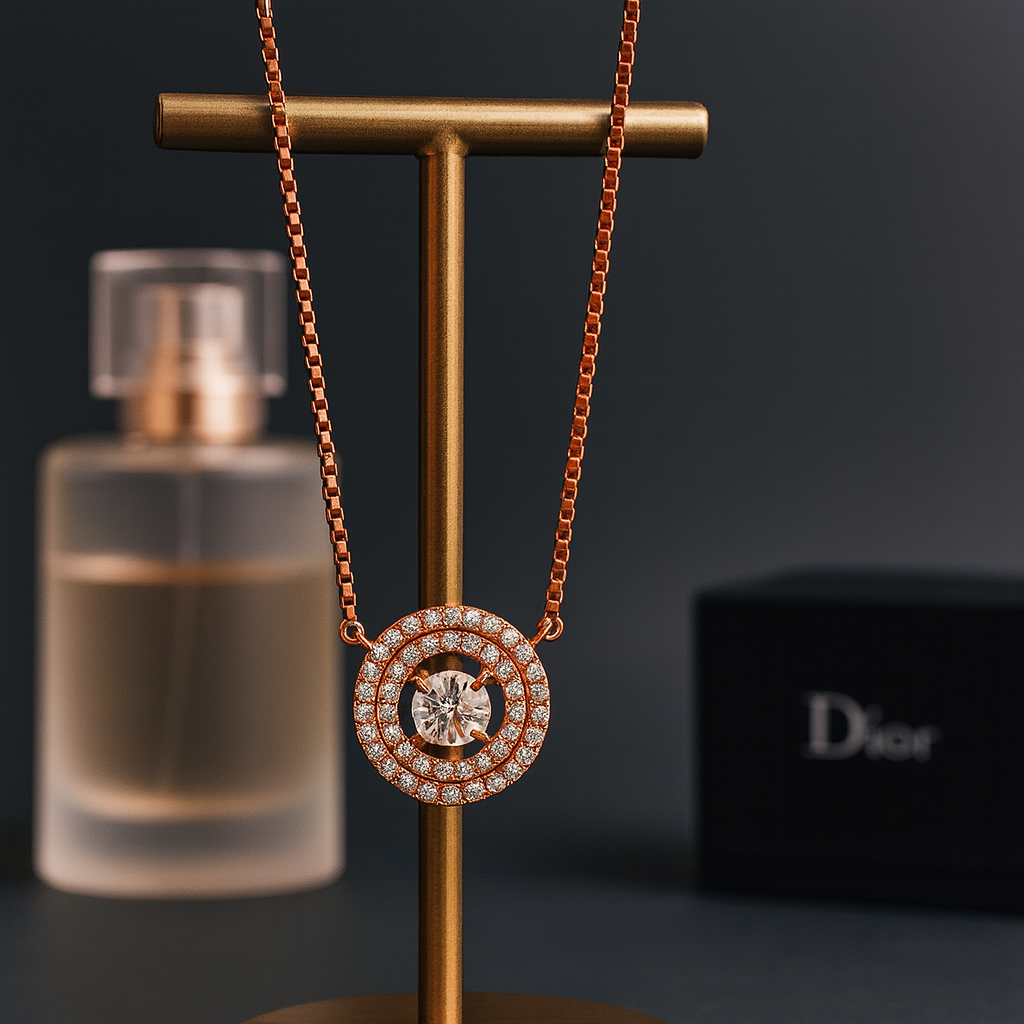 Step into timeless elegance with the Crystalora Halo Necklace, now in a luxurious rose gold finish. Crafted in 925 sterling silver with rose gold plating, this masterpiece features a brilliant solitaire centerpiece encircled by two radiant halos of cubic zirconia stones.