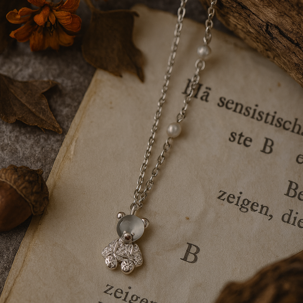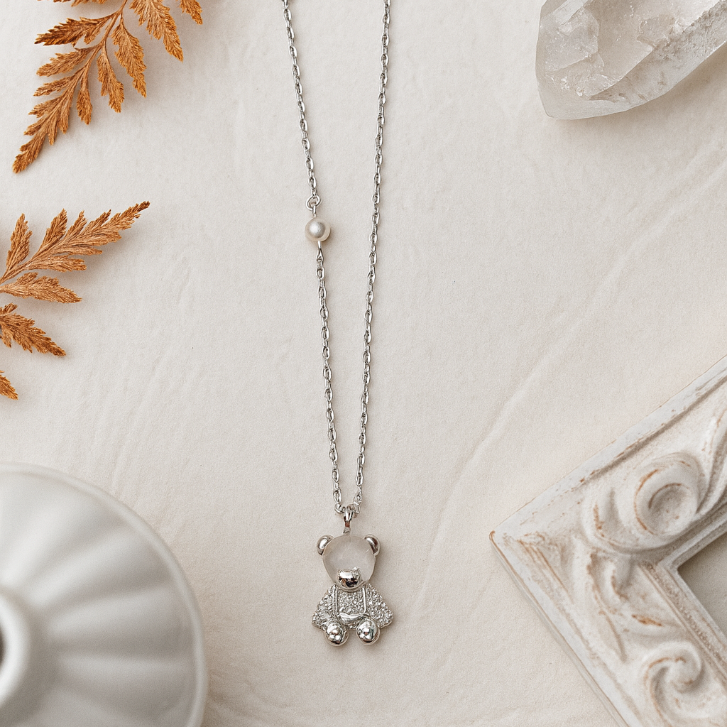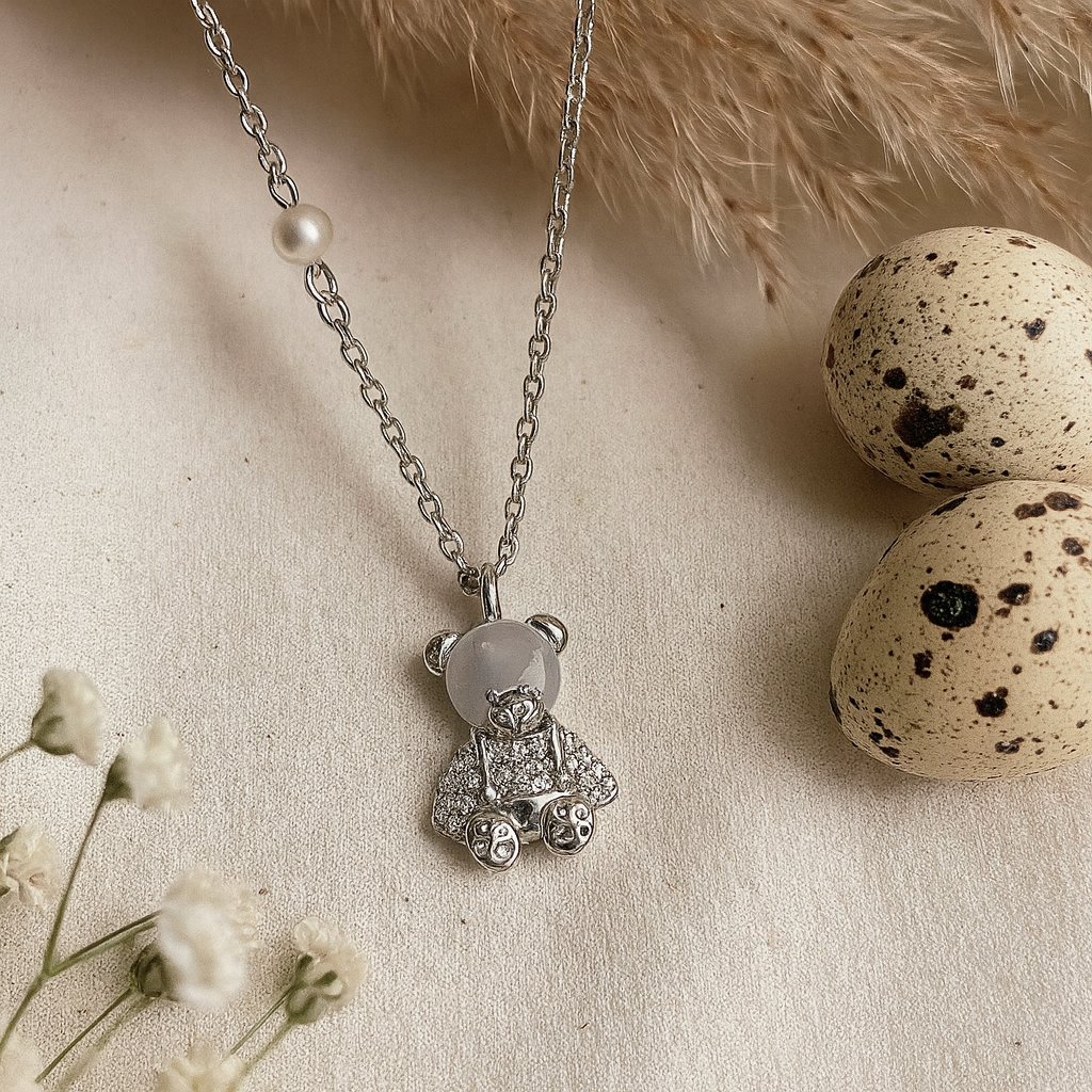 Carry charm and elegance close to your heart with the Cuddle Bear Necklace, crafted in 925 sterling silver. This adorable teddy bear pendant features a smooth gemstone face and a body encrusted with sparkling cubic zirconia, bringing together cuteness and sophistication in one timeless design.