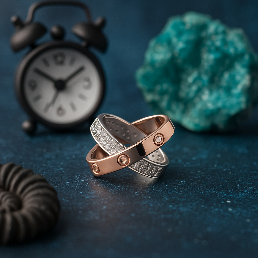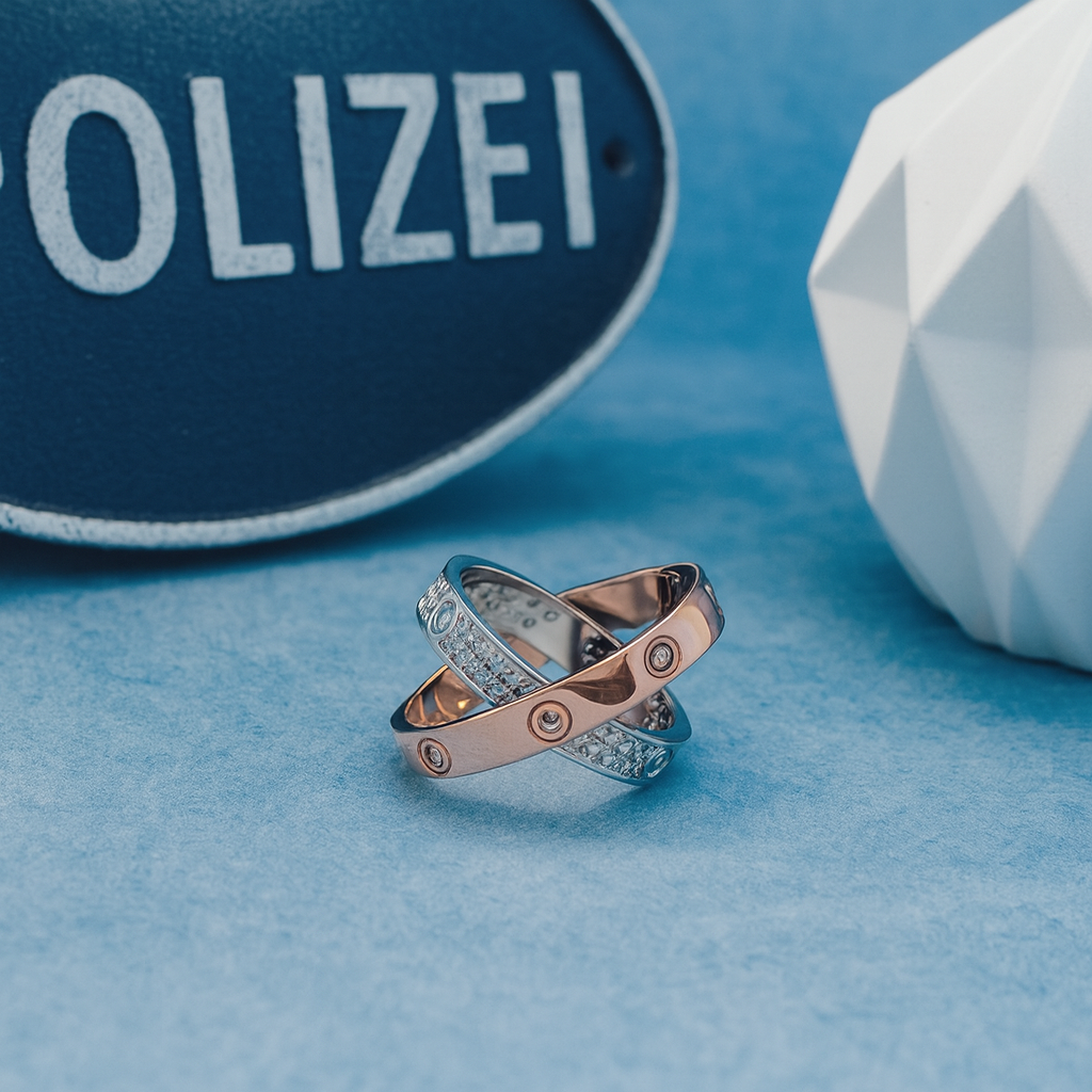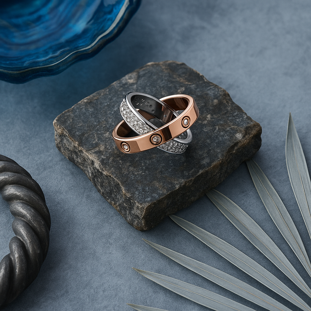 The D’Liora Band is a modern symbol of love and elegance. Crafted in fine silver with a dual-tone finish, this designer band features a striking crossover design adorned with sparkling pavé stones and sleek rose-gold accents.