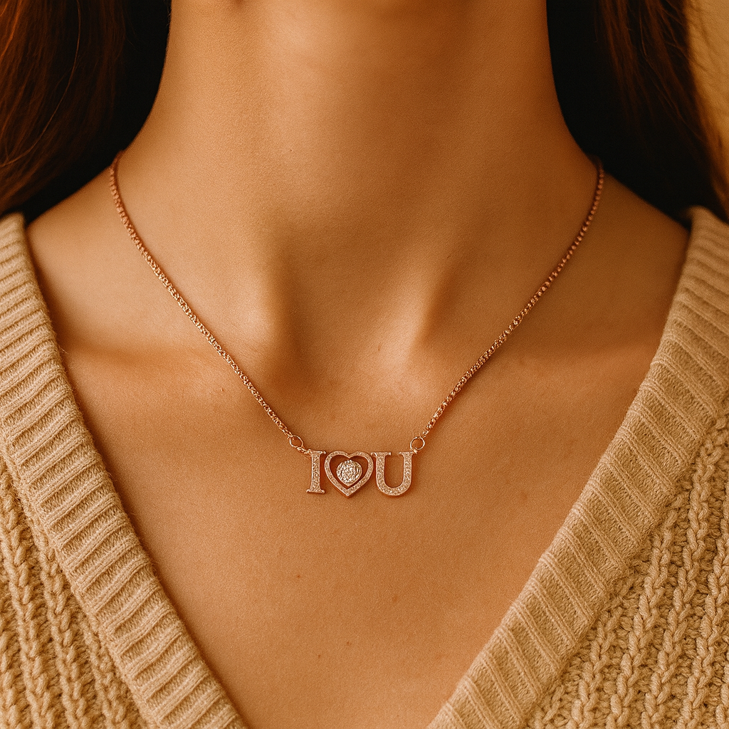Add a touch of romance and radiance with Dazzlé Amour, now in a stunning rose gold finish. This charming “I ❤️ U” necklace, crafted in 925 sterling silver with rose gold plating, features a sparkling heart centerpiece that symbolizes everlasting love.