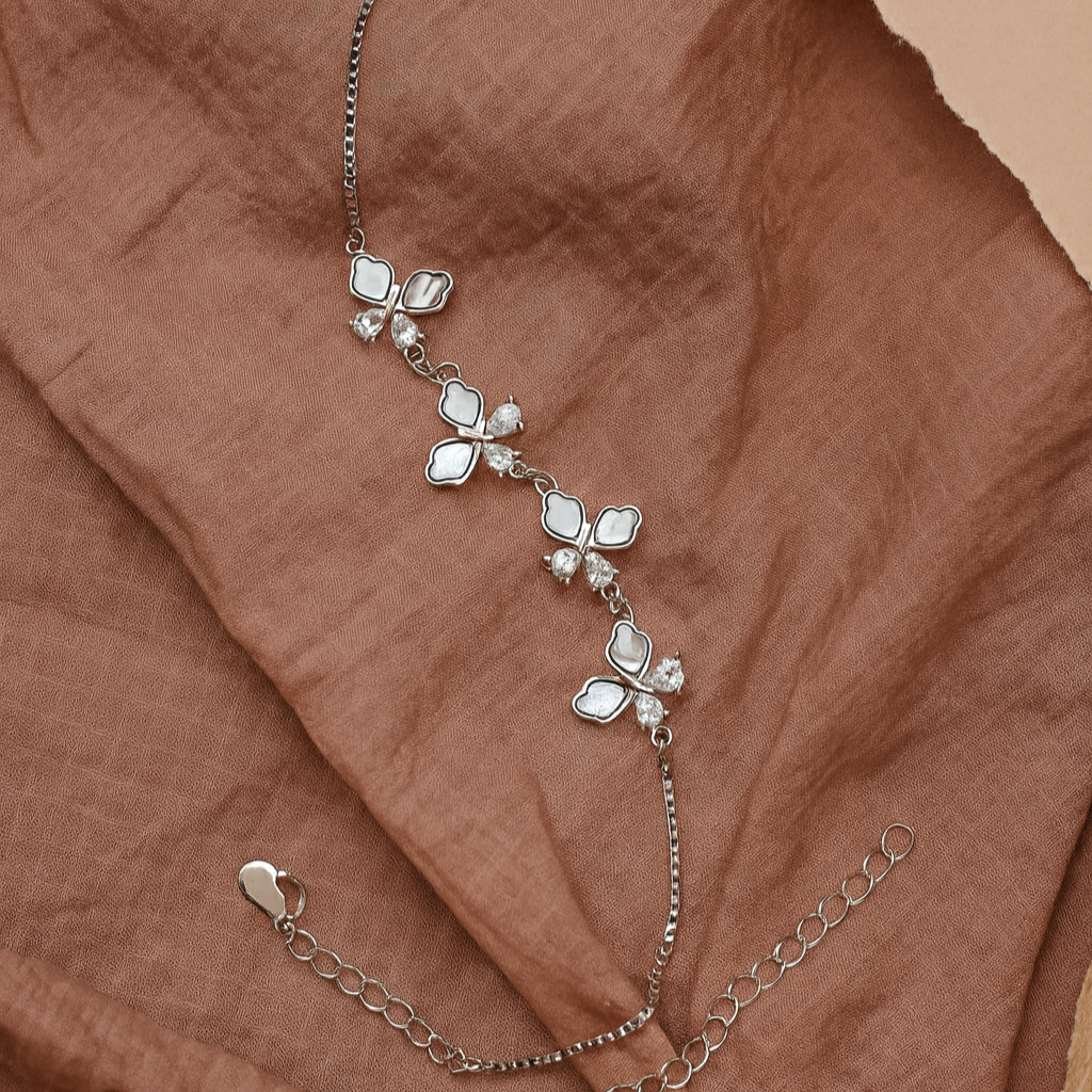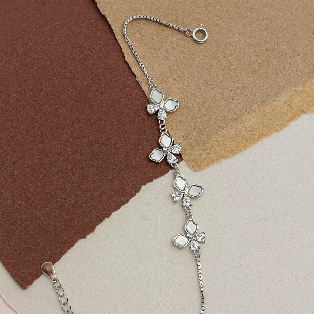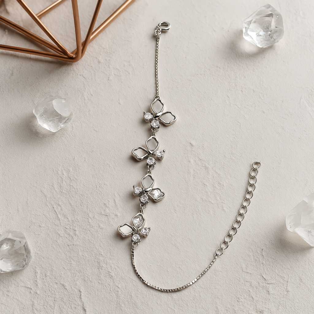 Add a touch of elegance to your look with our FloraGleam Silver Bracelet. Crafted in fine 925 sterling silver, this bracelet features delicate floral motifs adorned with sparkling cubic zirconia stones.
