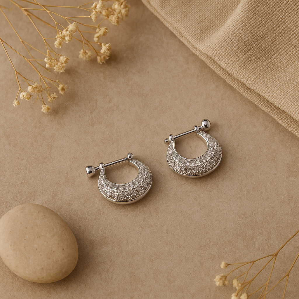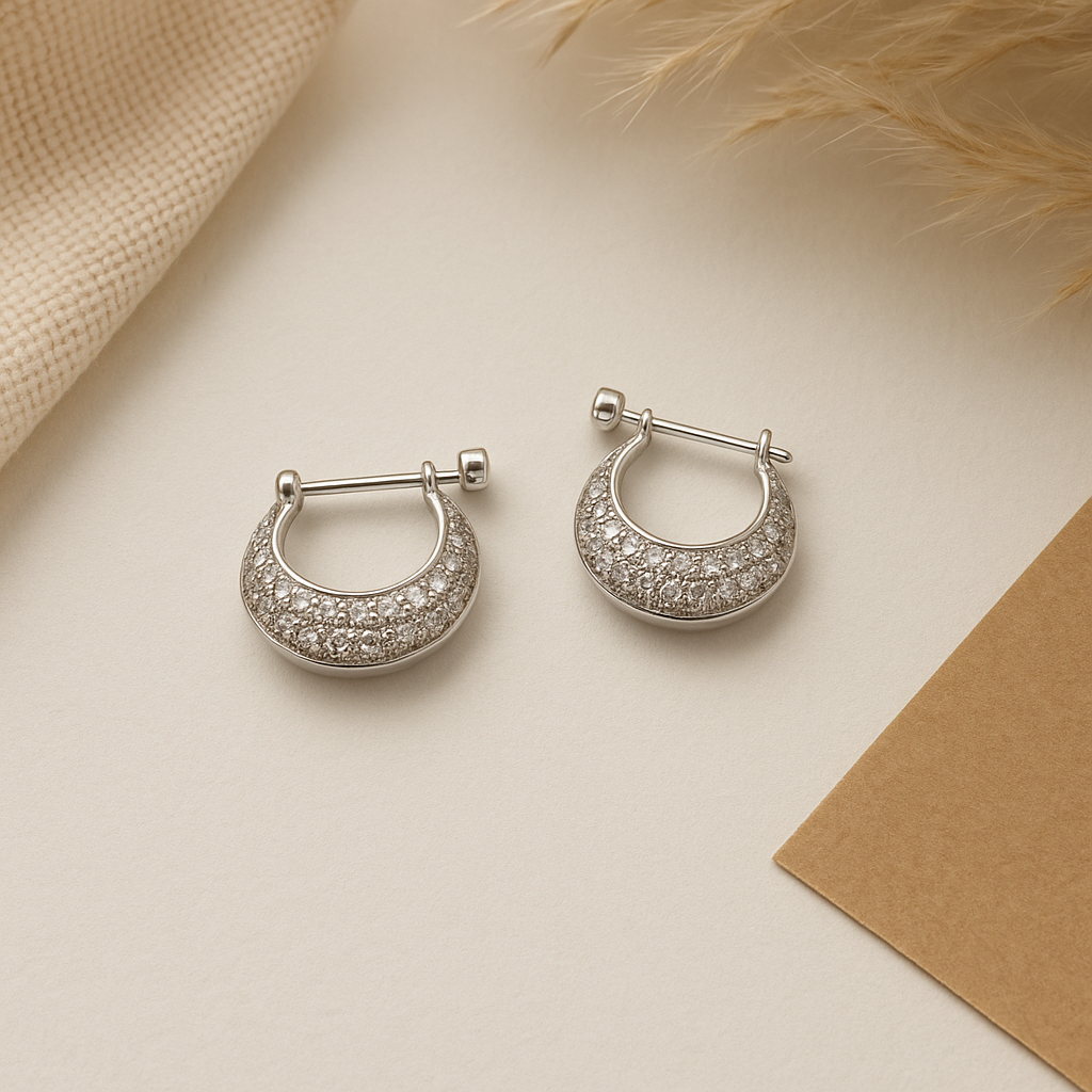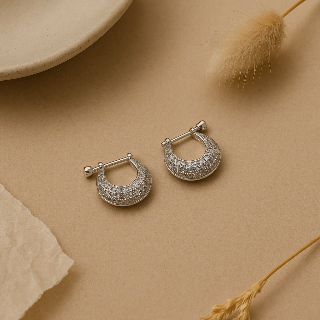 Elevate your everyday elegance with our LunaHoop Sterling Silver Earrings, crafted in fine 925 silver and embellished with a brilliant cluster of sparkling cubic zirconia. Designed in a crescent-hoop silhouette.