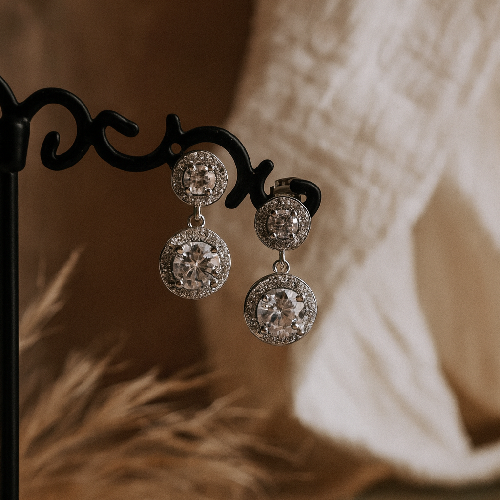 Elevate your jewelry collection with the LustreDuo Earrings, expertly crafted from fine 925 sterling silver. These earrings showcase a distinctive double-round design, featuring brilliant-cut cubic zirconia stones encircled by a delicate halo of smaller crystals for refined sophistication.