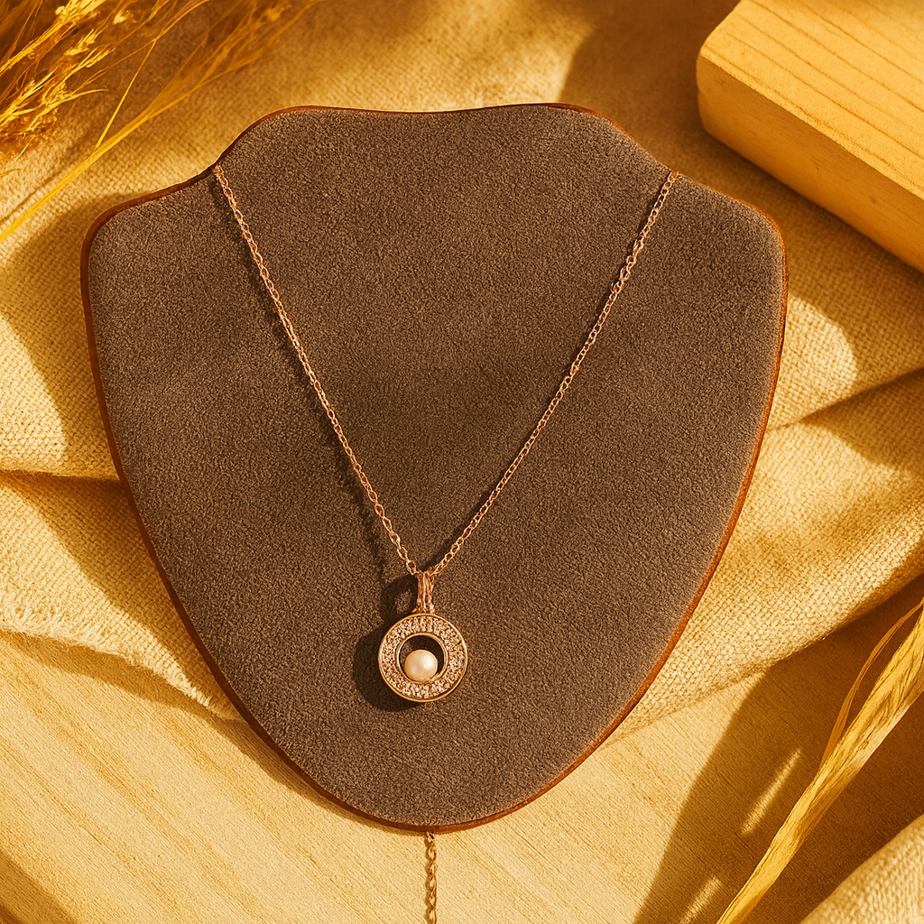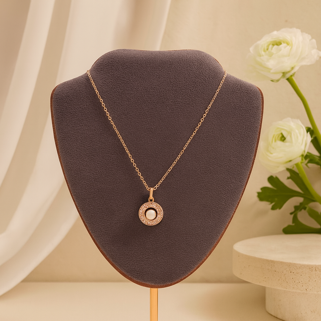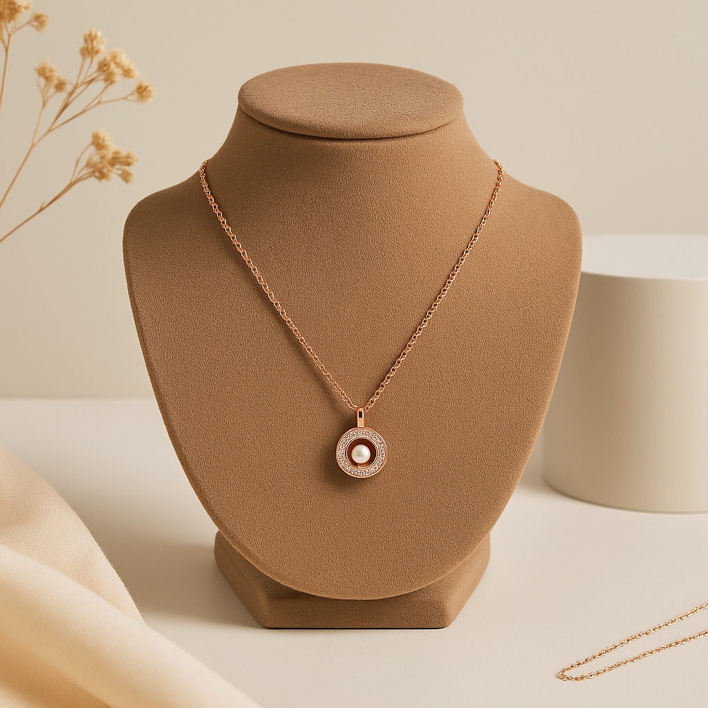 Elevate your elegance with the Lustrosa Halo Necklace, crafted in premium 925 fine silver with a radiant rose-gold finish. The centerpiece features a luminous pearl encased in a dazzling halo of shimmering stones, symbolizing purity, grace, and timeless sophistication. .