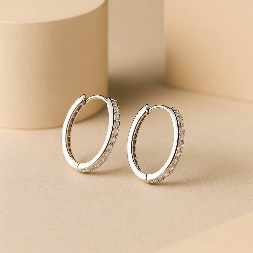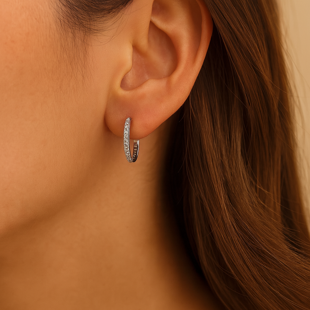Elevate your everyday style with NovaTwist Sterling Silver Hoops. Handcrafted in pure 925 sterling silver, these sleek hoop earrings are accented with a row of brilliant cubic zirconia stones, offering the perfect balance of sparkle and sophistication.