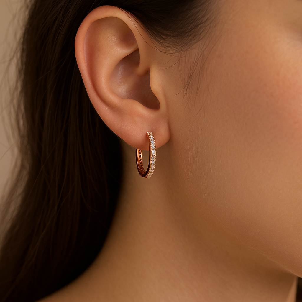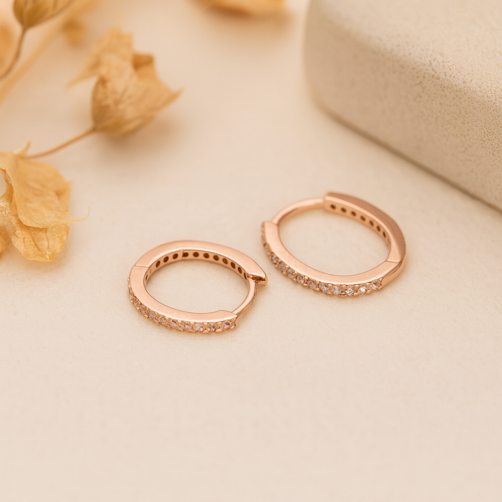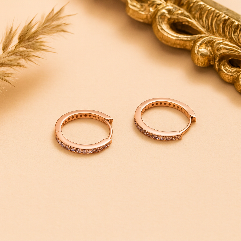 Unveil timeless elegance with RoséTwist Earrings, crafted in rose gold plated 925 sterling silver. These sleek mini hoops feature a delicate line of sparkling cubic zirconia, creating the perfect balance of minimalism and luxury.