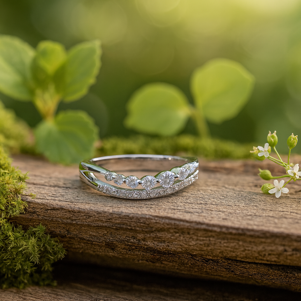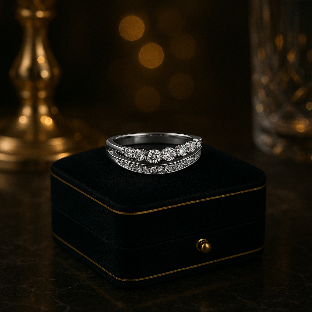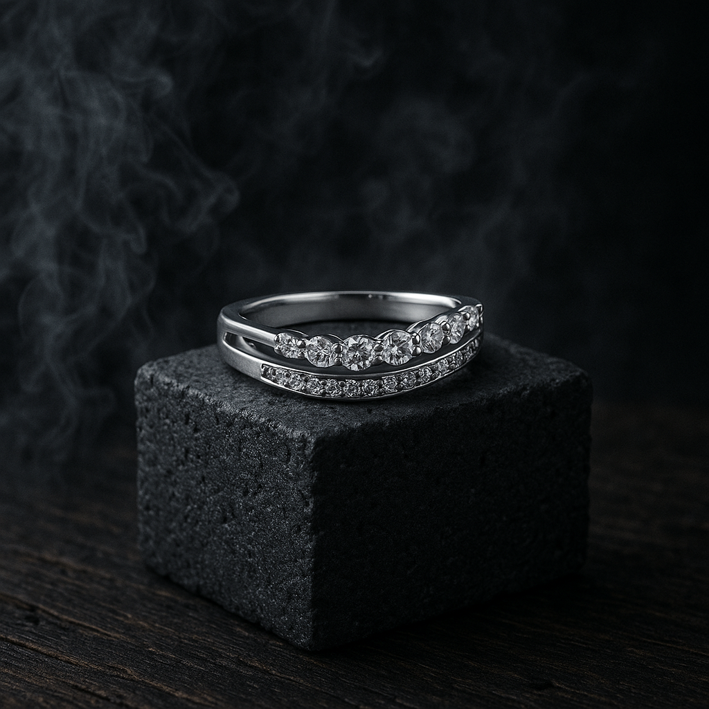 The Stellara Loop Ring is a dazzling symbol of eternal elegance. Crafted in fine silver, it features twin rows of sparkling stones, gracefully curving into a design that embodies infinity and balance.